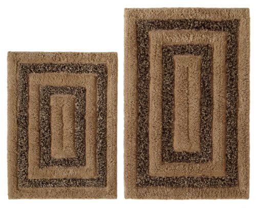 2 Piece Bath Rug Set - Tweed Race Track Beige Brown with Spray Latex back by Cotton Craft - Other Color - Spa Blue Chocolate - 100% Pure Cotton - High Quality and absorbent - Super Soft and Plush - Hand Tufted Heavy Weight Durable Construction - Larger Rug is 21x32 Oblong and Second Rug is Oblong 18x24 - Other Styles available - New Scroll, Greek Key, Palm Tree, Grid Stripe, Reversible Race Track, Pebble and Solid Reversible - Easy care machine wash