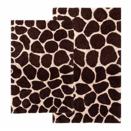 Chesapeake 2-Piece Giraffe 21-Inch by 34-Inch and 24-Inch by 40-Inch Bath Rug Set, Chocolate and Beige