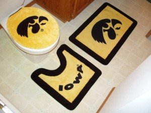 These three piece bath sets are a fun way to spruce up your bathroom. Fun for students, alumni, and fans alike. These rug sets make a great pair with our collegiate shower curtains. The bath mat is 20"X30", the seat cover and pedestal mats are standard size. 100% acrylic with non-skid back
